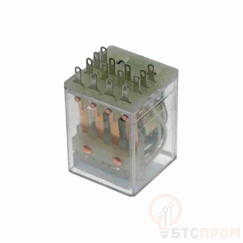Ключевой особенностью данной модели является контактная система: 4 замыкающих контакта (4з) при отсутствии размыкающих и переключающих, что позволяет одновременно управлять несколькими независимыми цепями. Коммутационная способность силовых контактов составляет до 5 А, что делает реле пригодным для подключения катушек контакторов, сигнальных ламп, маломощных исполнительных механизмов и других нагрузок.
