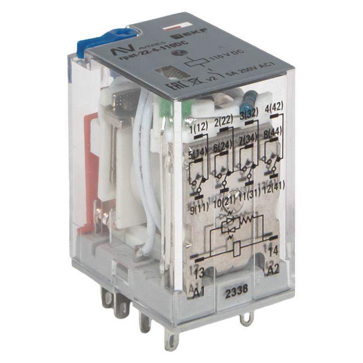 –Реле промежуточное с кнопкой и мех. индикацией RPAt 22/4 5A 110В DC AVERES EKF rpat-22-4-110DC