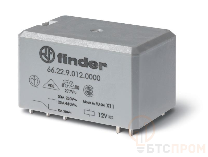 Реле силовое электромеханич. монтаж на печатную плату раздвоен. выводы 2CO 30А AgNi 48В AC RTII УХЛ4 опции: нет FINDER 662280481000