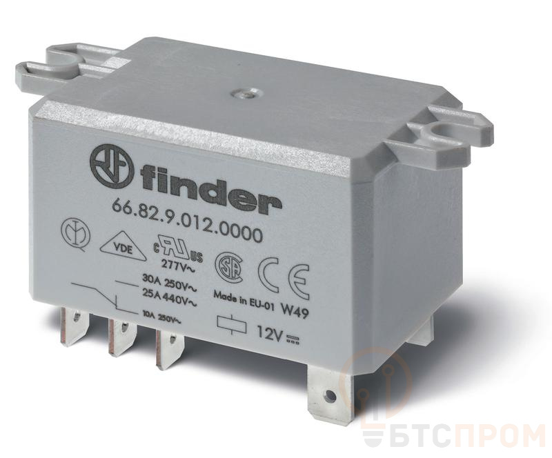 Реле силовое электромеханич. монтаж в наконечники Faston 250 (6.3х0.8мм) 2CO 30А AgCdO 24В DC влагозащ. RTIII УХЛ4 монтаж. фланец опции: нет FINDER 668290240001