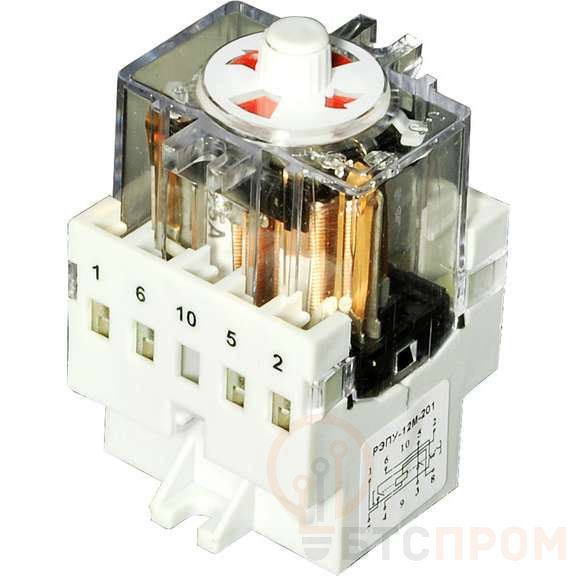 Промежуточно-указательное реле РЭПУ-12М-201-1 - реле с двумя замыкающими и одним размыкающим контактами с ручным возвратом,с номинальным значением 220В переменного напряжения включающей обмотки реле, исполнение для утопленного монтажа с задним присоединением проводников под винт.
