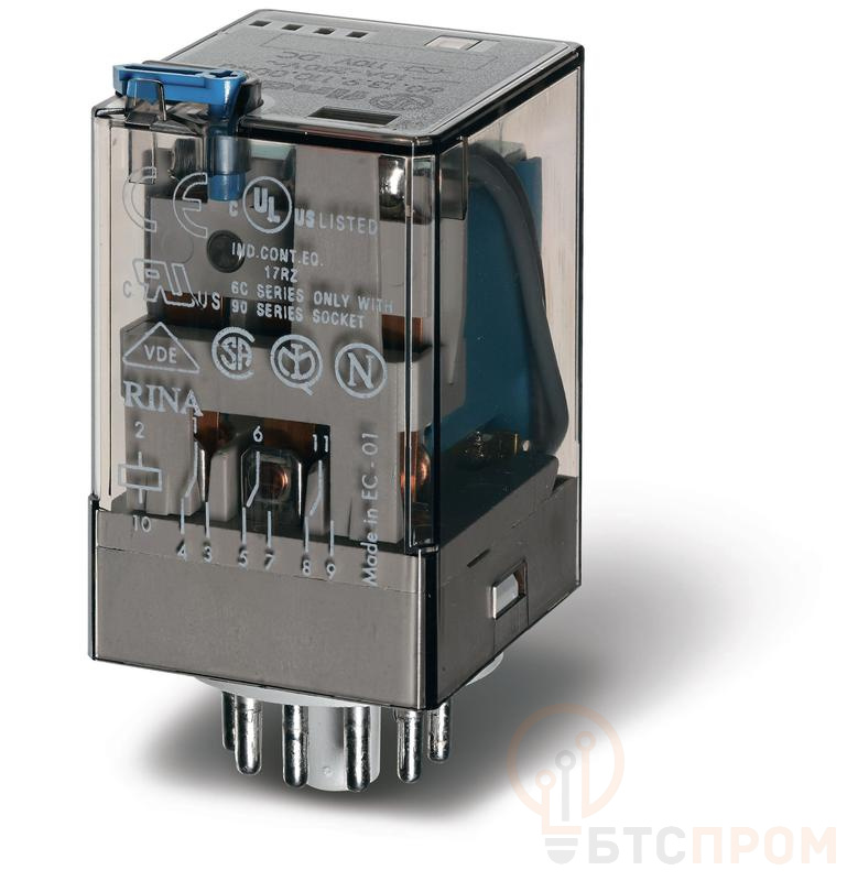 Реле универсальное электромеханич. монтаж в розетку 11-штырьковый разъем 3CO 10А AgNi 110В AC RTI опции: нет FINDER 601381100000