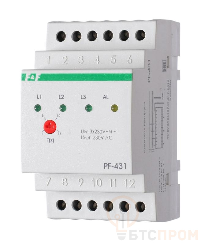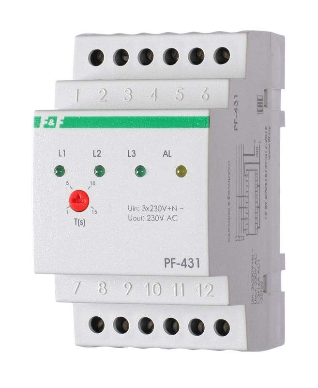 Переключатель фаз PF-431 (с приоритетной фазой; монтаж на DIN-рейке 35мм 3х400/230+N 3х16А IP20) F&F EA04.005.001