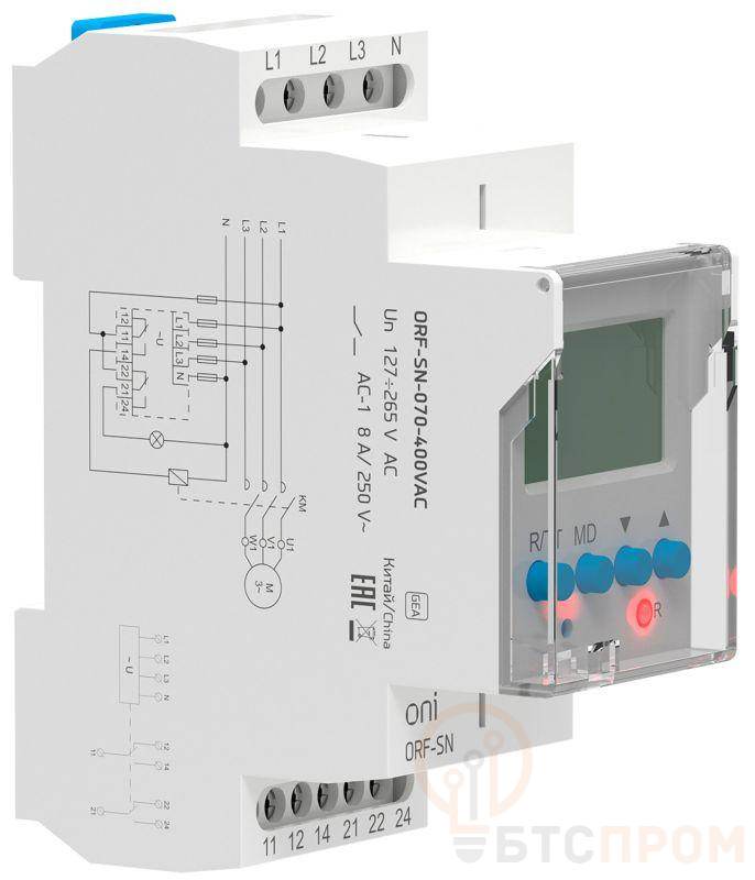 Реле контроля фаз ORF предназначены для контроля параметров трехфазной электрической сети (чередование фаз, обрыв фаз и нейтрали, асимметрия, повышенное и пониженное напряжение) и защиты чувствительных к этим параметрам потребителей. Реле осуществляет измерение напряжения на каждой фазе относительно нейтрали (L-N).
