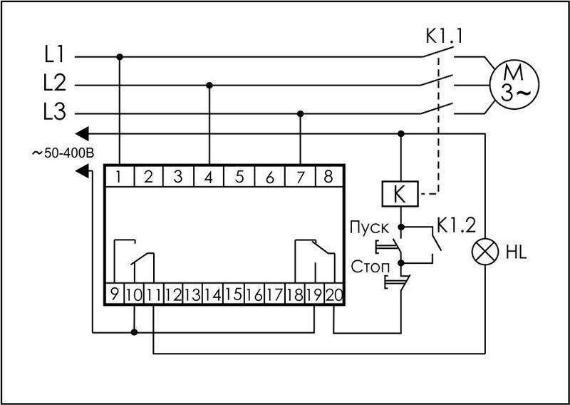 Реле контроля фаз серии "CKF" Монтаж на DIN-рейку. Предназначено для защиты электродвигателей и электроустановок, питаемых от трехфазной сети в случаях: отсутствия хотя бы одной из фаз, асимметрии напряжения, снижения напряжения менее 600 В, повышения напряжения более 780 В, нарушении чередования фаз. Принцип работы Если напряжение в пределах нормы, контакты исполнительного реле замкнуты и на контактор управления электродвигателем подается напряжение, управляющее его включением. В случае одной из вышеперечисленных аварийных ситуаций контакты реле размыкаются и контактор отключается. Включение происходит автоматически после восстановления сетевого напряжения питания. Особенности: контроль наличия фаз; контроль асимметрии между фазами; контроль нижнего значения напряжения; контроль верхнего значения напряжения; контроль чередования фаз; напряжение питания 3x690 В AC; контакт - 2NO/NC.