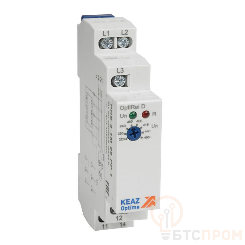 Реле контроля фаз OptiRel D PHS-3-1M-08-PP-2 без настр повышенного/пониженного асимметрии 3Ф 2СО КЭАЗ 332001
