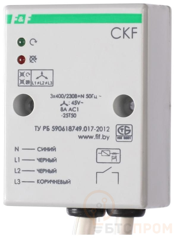 Реле контроля наличия и чередования фаз CKF (монтаж на плоскость; 3х400/230+N 8А 1Z IP65) F&F EA04.002.001