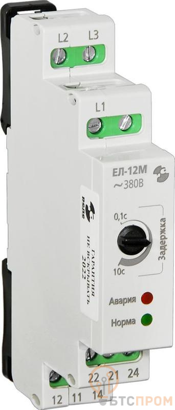 Реле контроля напряжения 3ф ЕЛ-12М УХЛ4 100В 50Гц задержка срабатывания 0.1...10с ток контактов исполнит. реле 5А 2п Реле и Автоматика A8222-77135259