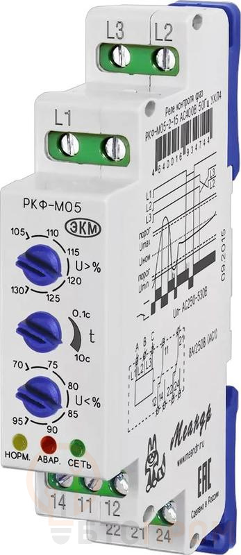 Реле контроля трехфазного линейного напряжения РКФ-М05-2-15 АС400В УХЛ4 задерж. срабат. 0.1...10с 8А 2П Меандр A8302-16934744