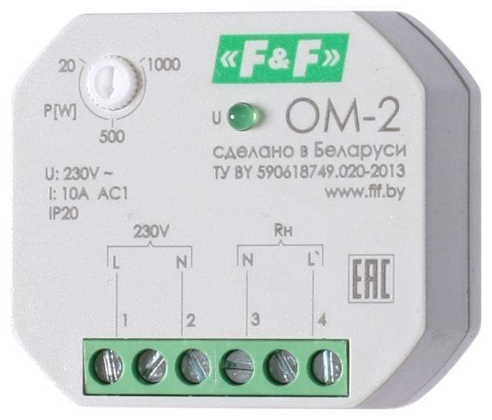 Ограничитель мощности серии "OM" В монтажную коробку. Для контроля потребления мощности в однофазных сетях и отключения питания от потребителя в случае превышения потребления мощности свыше установленного значения, замыкания в цепи нагрузки, повышенного или пониженного напряжения в сети питания. Ограничитель контролирует величину напряжения и величину потребляемого тока нагрузки встроенным трансформатором тока, вычисляет действующее значение потребляемой мощности в фазе и обрабатывает эти значения в соответствии с выбранным алгоритмом работы. При повышении значения мощности свыше установленного значения ОМ-3 отключает нагрузку на время, установленное потребителем. По истечении этого времени она автоматически подключается к сети питания. Особенности: однофазный защита от работы при пониженном и повышенном напряжении; защита от замыкания в цепи нагрузки; напряжение питания 230 В AC; диапазон контролируемой мощности 20...1000 Вт; контакт - 1NO (10 А).