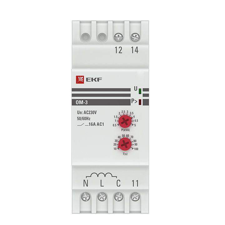 Ограничители мощности ОМ-3, ОМ-14 ОМ-630 EKF PROxima – это чувствительные приборы, которые отключат оборудование при выходе потребляемой мощности за допустимые значения. В функции ОМ-3 и ОМ-630 входит измерение мощности в одно и трёхфазных сетях соответственно и срабатывание при превышении заданного параметра. ОМ-14 обладает расширенным функционалом. Это устройство с удобным управлением и двумя цифровыми дисплеями измеряет активную, реактивную и полную мощности в однофазной сети, а также работает в режимах вольтметра и амперметра. ОМ-14 отключает оборудование при превышении порога мощности, защищает его от повышенного и пониженного напряжения. Чтобы подключить ОМ-14 в сети с током до 63А не потребуется устанавливать дополнительный контактор. Благодаря встроенному трансформатору прибор рассчитан на максимальный ток 80А. Особенности ограничителя мощности ОМ-630 EKF PROxima: - трансформаторное подключение и измерение мощности до 50 кВт, а так же управление 2-мя ступенями. Гарантия на все устройства составляет 7 лет.