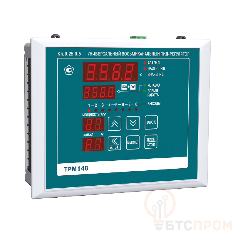 Микропроцессорный измеритель-регулятор ТРМ148 от компании ОВЕН — это многофункциональный прибор, предназначенный для точного контроля и автоматического регулирования температуры и других технологических параметров в промышленных условиях. Устройство поддерживает подключение различных типов датчиков, включая термопары и термосопротивления, что обеспечивает его универсальность.