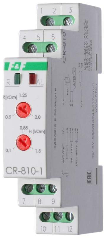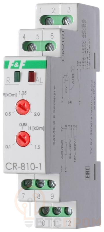 Реле температурное CR-810-1 (Для защ. электродвиг. от перегрева; монтаж на DIN-рейке; сопротив. петли датч. при превыш. темп. 600…3500Ом; регул. гистерезис; PTC (в компл. не поставляется) 24-127В/127-420В AC/DC 1NO/NC 16А) F&F EA05.002.002