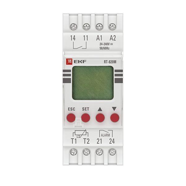 Реле контроля температуры RT-820М с внешнем датчиком температуры предназначено для контроля и поддержания температуры воздуха жилых и производственных помещений, а также объектов и жидкостей в различных технологических процессах на заданном уровне, при помощи управления обогревательным или охлаждающим оборудованием. Изделие соответствует ГОСТ IEC 60947-1-2014, ГОСТ IEC 60947-5-1-2014.
