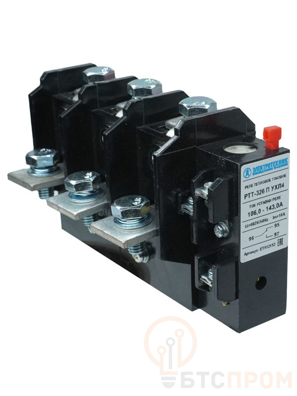 Производим и поставляем. Товар сертифицирован. Реле электротепловое токовое серии РТТ-3, РТТ-4 предназначены для защиты трехфазных асинхронных электродвигателей с короткозамкнутым ротором от токовых перегрузок недопустимой продолжительности, в том числе, возникающих при выпадении одной из фаз. Реле предназначены для применения в качестве комплектующих изделий в схемах управления электроприводами в цепях переменного тока напряжением до 660В частотой 50 или 60Гц, в цепях постоянного тока напряжением 440В. Реле серии РТТ-3, РТТ-4 имеют температурную компенсацию. Реле устанавливаются на пускатели ПМ-12, ПМ12-ЭК (CJ-40) с номинальными токами до 250А. Гарантийный срок – 2 года со дня ввода в эксплуатацию. - Самый большой ассортимент на рынке России и стран СНГ. - Надёжная конструкция.