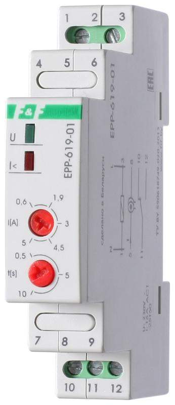 Реле тока EPP-619 (исп.1 (0.6-5А); сквозной канал; монтаж на DIN-рейке 35мм; 1 модуль; 230В AC 16А 1P IP20) F&F EA03.004.005