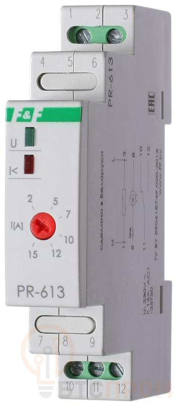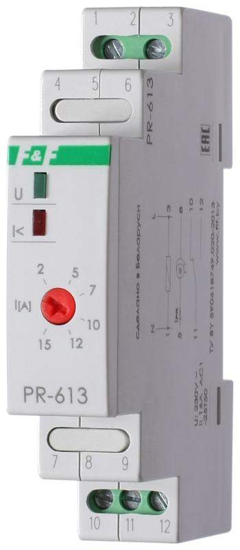 Реле тока PR-613 (2-15А сквозной канал монтаж на DIN-рейке 35мм 230В AC 16А 1НО IP20) F&F EA03.003.004