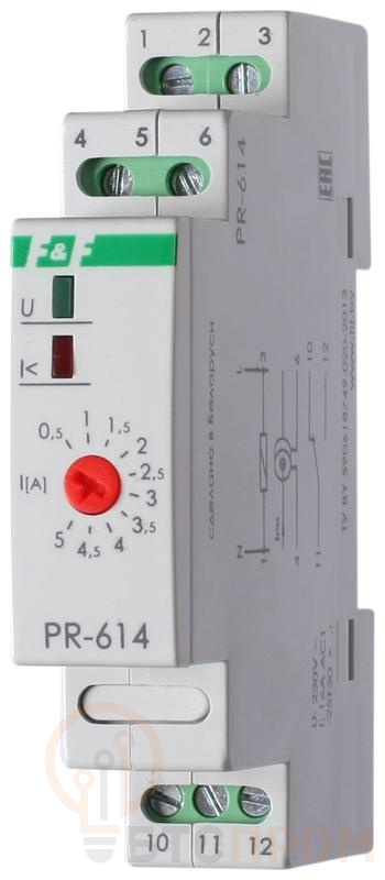 Реле тока PR-614 (для работы с внешним трансф. тока монтаж на DIN-рейке 35мм 230В AC 16А 1перекл. IP20) F&F EA03.003.005