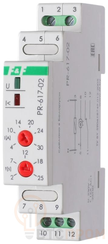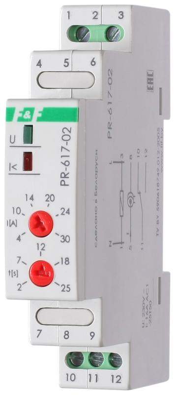 Реле тока PR-617-02 (диапазон 4-30А; с задержкой отключения; сквозной канал; монтаж на DIN-рейке 35мм 230В 16А 1Z IP20) F&F EA05.001.003