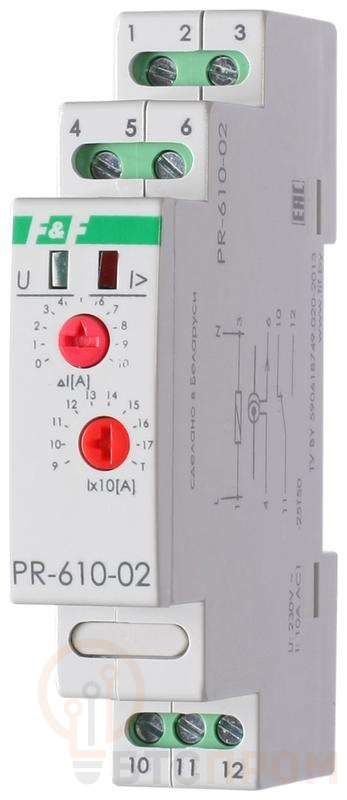 Реле тока серии PR Монтаж на DIN-рейку. Для отключения цепей и источников питания, обеспечивая защиту от превышения допустимой величины потребляемого тока. Реле тока измеряет ток в контролируемой цепи с помощью выносного трансформатора тока, определяет увеличение тока и срабатывает, когда ток достигает установленного предельного значения. При этом осуществляется управление цепью питания катушки независимого расцепителя, отключающего нагрузку от сети питания. При восстановлении параметров тока, достижении снижения на 5% от установленного контролируемого значения, реле тока с задержкой в 5 секунд срабатывает и переключает контакты в исходное положение. Цепь питания катушки независимого расцепителя разрывается, нагрузка подключается к сети питания. Особенности: напряжение питания - 230 В AC; диапазон контролируемых токов 90…180 А; максимальный ток нагрузки - 10 А; контакт - 1NO/NC.