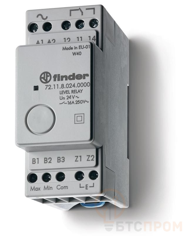 Реле контроля уровня фиксированный диапазон чувствительности 150кОм 24В AC выход 1CO 16А модульное 35мм IP20 FINDER 721180240000