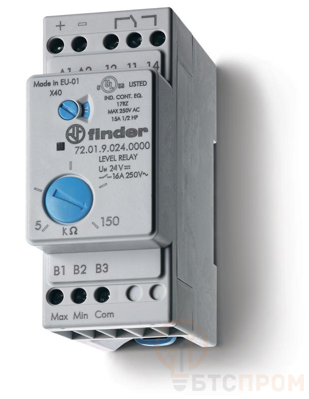 Реле контроля уровня настраиваемый диапазон чувствительности 5…450кОм 240В AC выход 1CO 16А модульное 35мм IP20 FINDER 720182400002PAS