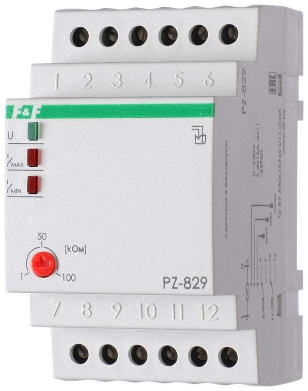 Реле уровня жидкости PZ-829 (без датчиков; двухуровн.; 3 модуля; монтаж на DIN-рейке) F&F EA08.001.007