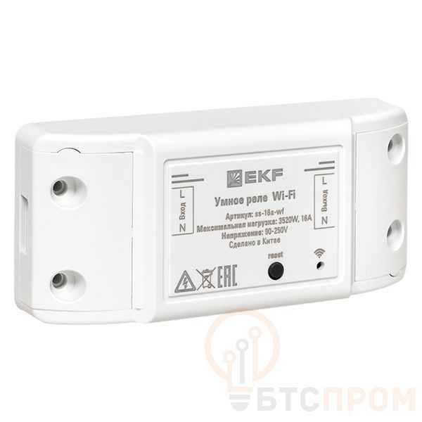 Умное реле 16А PRO Wi-FI EKF Connect предназначено для удаленного управления электропитанием, мониторингом энергопотребления любого электроприбора с мощностью до 3520 Вт и силой тока до 16 А. Имеет функции: •удаленного включения/отключения электроприборов из любой точки планеты при наличии подключения к Интернету; •функция учета энергопотребления; •отключение по таймеру обратного отсчета; •включение/отключение по расписанию; •управление голосом с помощью голосового помощника Алисы от компании Яндекс. Управление умным реле осуществляется с помощью мобильного приложения EKF Connect Home для iOS и Android.