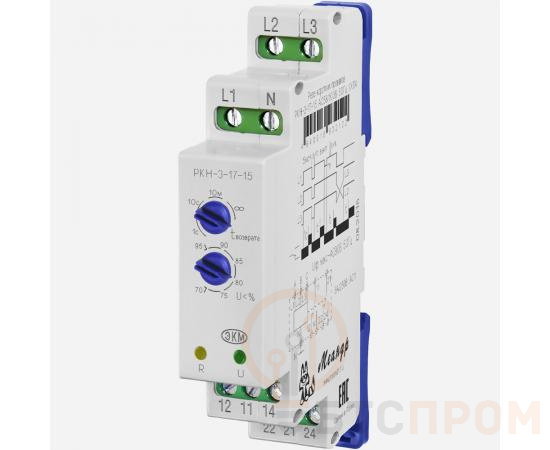 Реле контроля напряжения РКН-3-17-15 от производителя «Меандр» предназначено для автоматического отключения трехфазной нагрузки при недопустимых отклонениях напряжения в сети с последующим автоматическим включением после восстановления параметров.