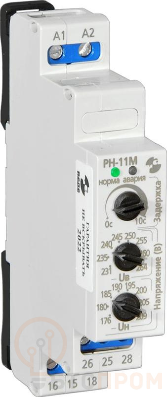 Реле контроля напряжения РН-11М 24В 50Гц контроль однофазной сети по верхнему и нижнему порогам срабатывание с выдержкой времени 0.1-10с ток контактов исполн. реле 8А 2п УХЛ4 Реле и Автоматика A8223-80108806