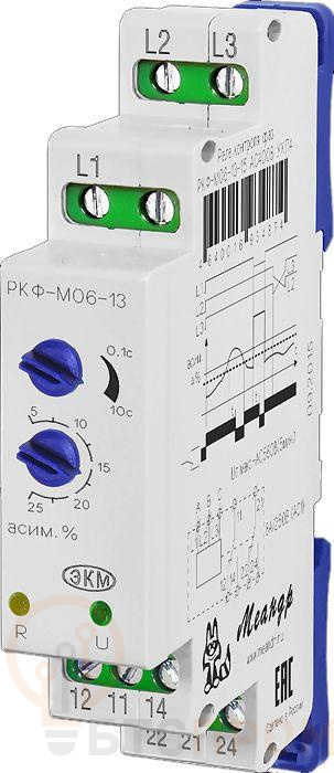 Реле контроля трехфазного линейного напряжения РКФ-М06-13-15 AC400В УХЛ4 регулируемый порог асимметрии фаз задержка сраб. 0.1-10с ток контактов исполнительного реле 8А 2п Меандр A8302-16934874