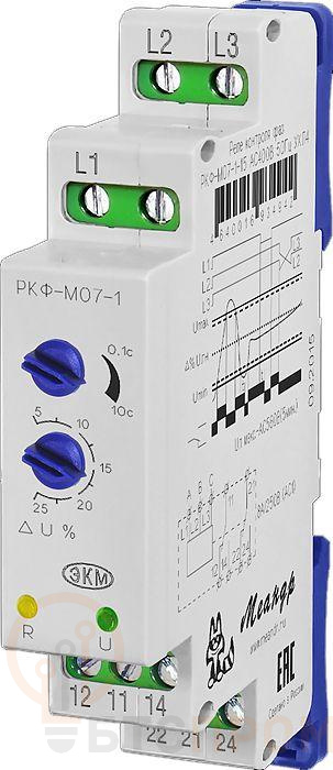 Реле контроля трехфазного линейного напряжения РКФ-М07-1-15 AC100В УХЛ2 (спец.) синхронное регулирование порогов сраб. задержка сраб. 0.1-10с ток контактов исполнительного реле 8А 2п Меандр A8302-16934898