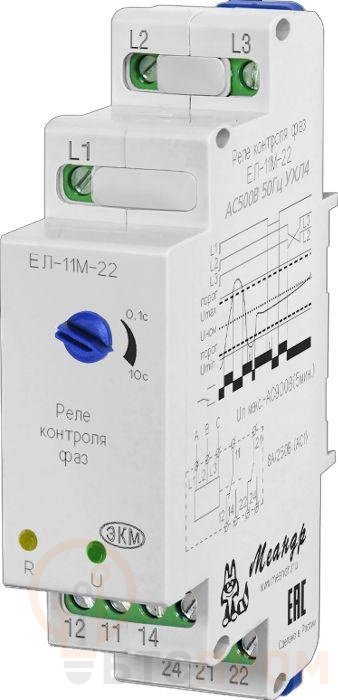Реле контроля напряжения ЕЛ-11М-22 AC500В УХЛ4 от производителя «Меандр» — это специализированное устройство, предназначенное для непрерывного мониторинга параметров трехфазной сети. Аппарат обеспечивает надежную защиту электрооборудования от асимметрии фаз, обрыва нулевого провода, а также от опасных повышений и понижений напряжения.