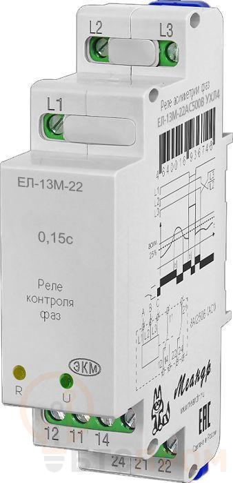 Реле контроля трехфазного напряжения ЕЛ-13М-22 AC690В УХЛ4 от производителя «Меандр» — это специализированное устройство, предназначенное для непрерывного мониторинга параметров трехфазной сети. Оно обеспечивает надежную защиту электрооборудования от перекосов фаз, обрыва нулевого провода, а также от повышенного или пониженного напряжения.