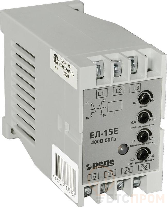 Реле контроля трехфазного напряжения ЕЛ-15Е 400В 50Гц регулировка порогов сраб. задержка срабатывания 0.1-10с ток контактов исполнительного реле 5А 1з+1р УХЛ4 Реле и Автоматика A8222-34125711