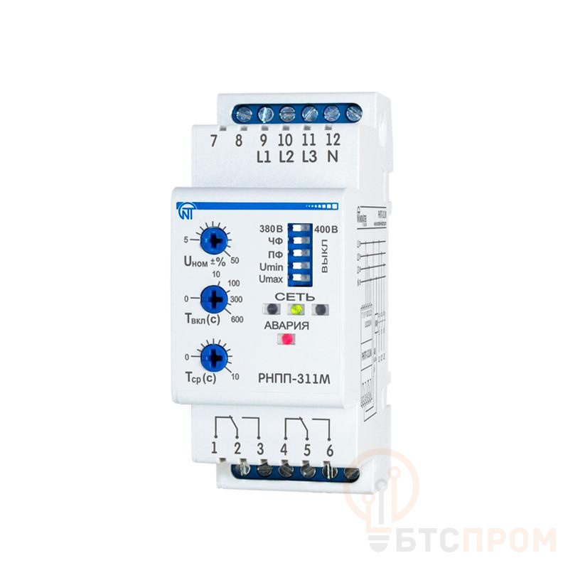 Реле напряжения и контроля фаз РНПП-311М-24 3ф 380В с питанием 24В вкл/откл защит 2 DIN НовАтек-Электро 3425602311