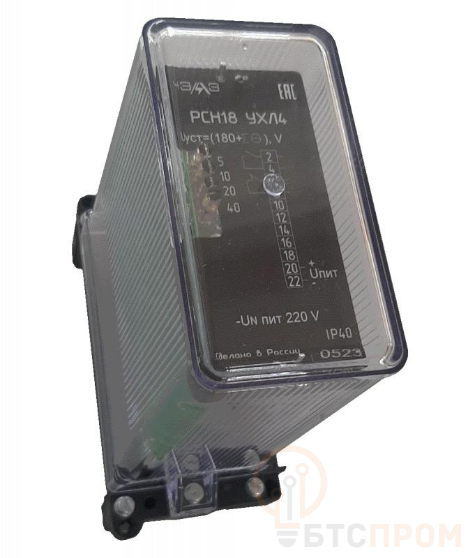 Реле напряжения РСН-18 заднее присоединение от ЧЭАЗ (A8119-77137246) — это современное электронное устройство, предназначенное для защиты однофазных сетей 230 В от нестабильного напряжения. Прибор автоматически отключает питание нагрузки при выходе напряжения за установленные верхний (100-280 В) и нижний (120-200 В) пределы, с возможностью регулировки времени задержки на включение (1-600 с).