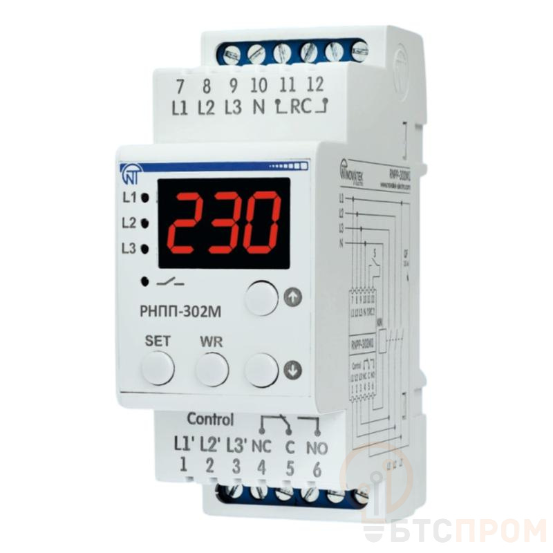 Реле напряжения трехфазное РНПП-302М от производителя «НовАтек-Электро» — это современное устройство для защиты электрооборудования от нестабильности в сети. Прибор контролирует наличие и чередование фаз, уровень напряжения, а также симметрию в трехфазных сетях 380 В, 50 Гц.