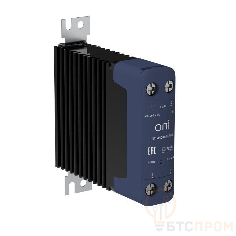 Реле твердотельное SSR1 15А 4-32В DC 24-480В AC с радиатором ONI SSR1-15DA480-RAD фото в каталоге от BTSprom.by