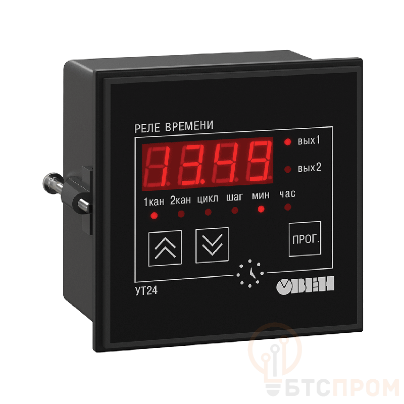 Микропроцессорное двухканальное реле времени УТ24-Д.Р от компании ОВЕН — это современное и многофункциональное устройство для автоматизации технологических процессов. Оно обеспечивает высокую точность установки временных интервалов и задержек благодаря микропроцессорному управлению.
