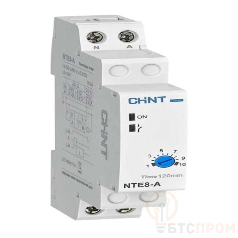 Реле времени серии NTE8 применяются для включения и отключения потребителей на заданное время в сетях промышленной и бытовой автоматизации: освещение, отопление, вентиляция и кондиционирование. Основные характеристики: Напряжение управления – AC230В; АС24В; DC24В Напряжение срабатывания – 0,85–1,10Us Условный тепловой ток – 5А Исполнение контакта – 1НО (тип А); 1 переключающийся контакт (тип В; М1; М2) Категория применения – AC-15 Потребляемая мощность – не более 1 ВА Диапазон выдержки времени – 0,1–10с; 12–120с; 48–480с; 0,5–5 мин. Точность настройки – 1% Механическая износостойкость – 1000 циклов В/О Электрическая износостойкость – 100 циклов В/О Степень загрязнения – 2 Степень защиты – IP20 Ширина – 18 мм Монтаж – на симметричную DIN-рейку 35 мм