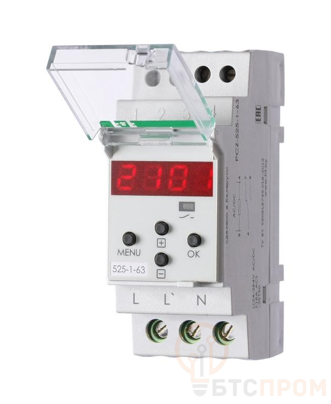 Реле времени одноканальное PCZ-525-1-63 астрономическое макс. 63А коррекция времени включения/выключения; ночной перерыв 2 модуля монтаж на DIN-рейке F&F EA02.002.019
