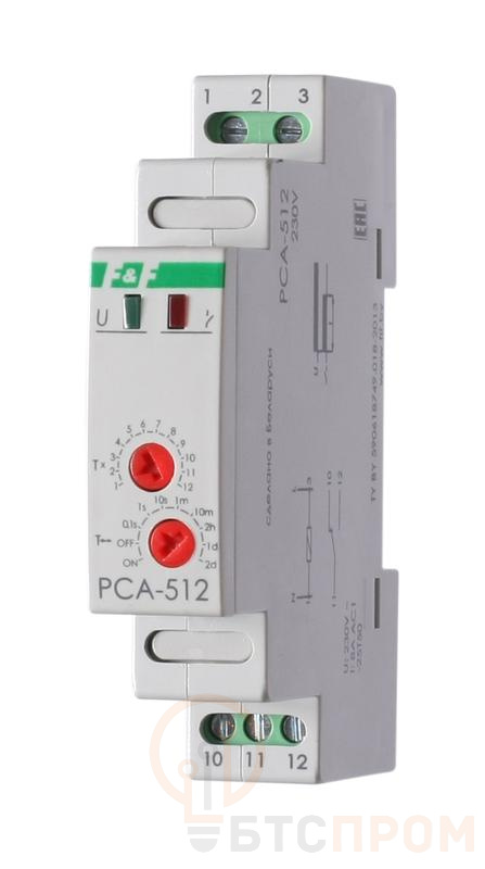 Реле времени серии "PCA" Монтаж на DIN-рейку. Предназначено для выключения потребителей в системах автоматики (в вентиляционных, отопительных, осветительных, сигнализационных и т.п.) по истечении заданного отрезка времени. Принцип работы При включении питания включается реле, замыкаются контакты 11-12. После отсчёта установленной выдержки времени контакты реле возвращаются в положение 11-10 и в таком положении остаются до отключения питания. Для повтора цикла работы необходимо отключение напряжения питания и подача его повторно. Особенности: напряжение питания 230 В AC; диапазон выдержки времени 0,1 с...24 суток ; контакт - 1NO/NC (8 А).