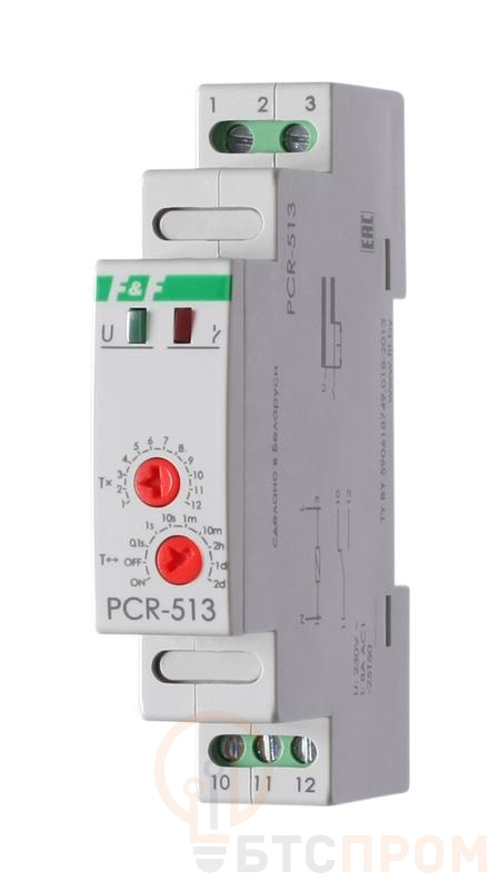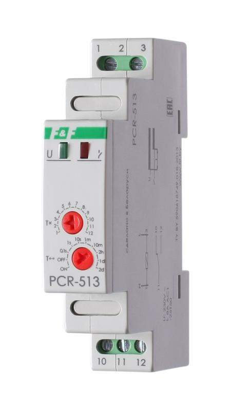 Реле времени серии "PCR" Монтаж на DIN-рейку. Предназначено для включения потребителей в системах автоматики (в вентиляционных, отопительных, осветительных, сигнализационных и т.п.) через заданный отрезок времени. Принцип работы После включения питания и отсчёта установленной выдержки времени включается реле, замыкаются контакты 11-12 и в таком положении остаются до отключения питания. Для повтора цикла работы необходимо отключение напряжения питания и подача его повторно. Особенности: напряжение питания 230 В AC; диапазон выдержки времени 0,1 с...24 суток ; контакт - 1NO/NC (8 А).