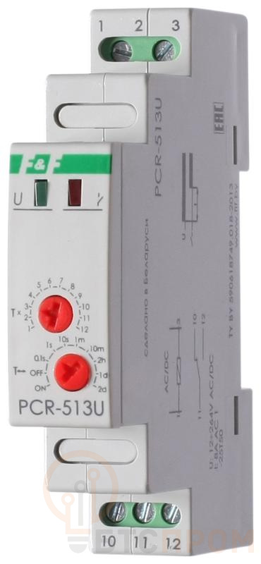 Реле времени PCR-513U 8А 12-264В AC/DC 1 перекл. IP20 задержка включ. монтаж на DIN-рейке F&F EA02.001.004