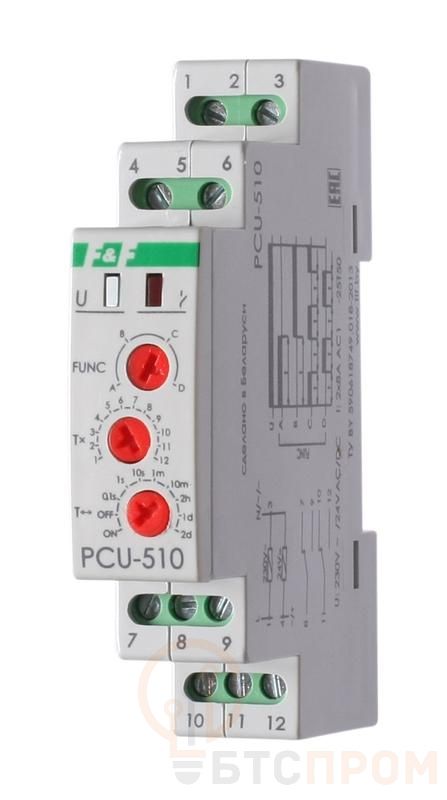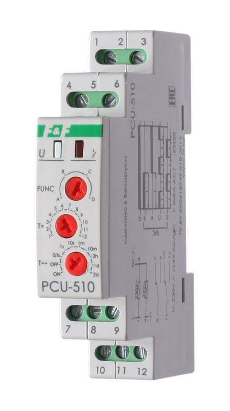 Реле времени серии "PCU" Монтаж на DIN-рейку. Предназначено для включения/выключения потребителей в системах автоматики (в вентиляционных, отопительных, осветительных, сигнализационных и т.п.) на заданный отрезок времени. Функции: Включение нагрузки на время t (A); Задержка включения(В); Циклическая работа с задержкой выключения (С); Циклическая работа с задержкой включения (D). Особенности: многофункциональное (4 функции); напряжение питания 230 В AC; 24 В AC/DC; диапазон выдержки времени 0,1 с...24 суток ; контакт - 2NO/NC (2х8 А).