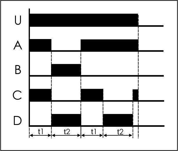 Реле времени серии "PCU" Монтаж на DIN-рейку. Предназначено для включения/выключения потребителей в системах автоматики (в вентиляционных, отопительных, осветительных, сигнализационных и т.п.) на заданный отрезок времени. Функции: Задержка выключения на время t (А) Задержка включения (В) Циклическая работа с задержкой выключения (С) Циклическая работа с задержкой включения (D) Особенности: многофункциональное (4 функции); циклическое включение нагрузки по двум независимым уставкам (время работы и перерыва); напряжение питания 230 В AC; диапазон выдержки времени 0,1 с...24 суток ; контакт - 2NO/NC (2х8 А).