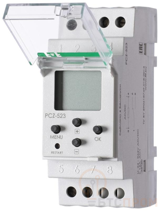 Реле времени PCZ-523 16А 24-264В AC/DC 1 переключ. контакт IP20 1 канал импульс. 1с 99мин 2х60вкл./выключ. монтаж на DIN-рейке F&F EA02.002.003