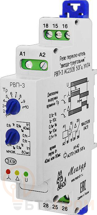 Реле времени пусковое РВП-3 AC110В УХЛ4 (спец.) отсчет времени по включению питания переключение "звезда-треугольник" ток контактов исполнительного реле 16А Меандр A8302-16933624