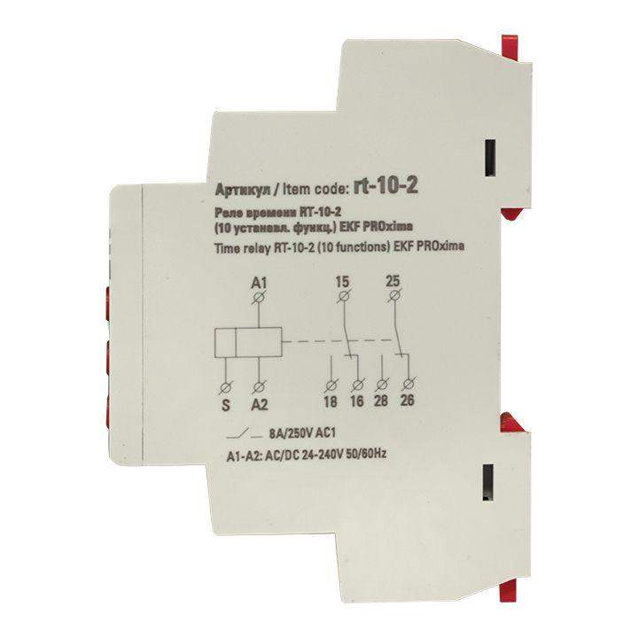 Многофункциональное реле времени RT-10 EKF является электронным коммутационным аппаратом с регулируемыми режимами работы и регулируемой установкой времени. Реле предназначено для включения или отключения нагрузки по заданным временным величинам и режимам работы. Переключение диапазонов времени и исполняемой функции производится с помощью поворотных регуляторов расположенных на лицевой поверхности реле. Реле может работать по одной из 10 возможных функций Реле применяется в системах промышленной и бытовой автоматики: в вентиляционных, отопительных, осветительных системах.